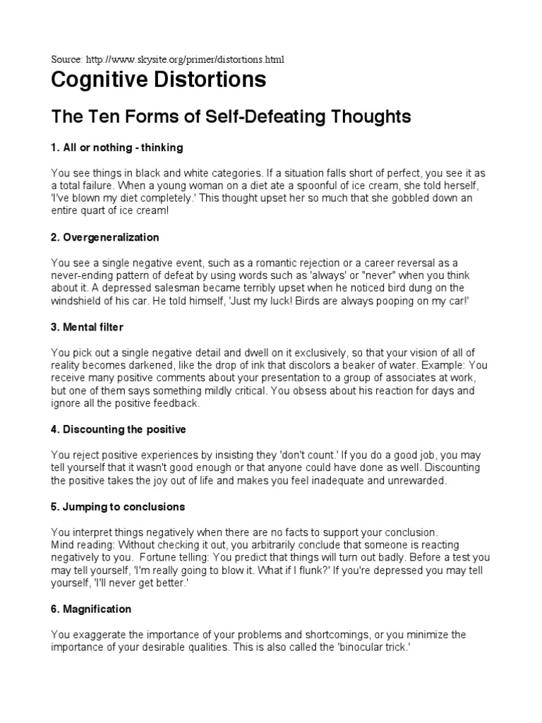 Dbt Cognitive Distortions Worksheet